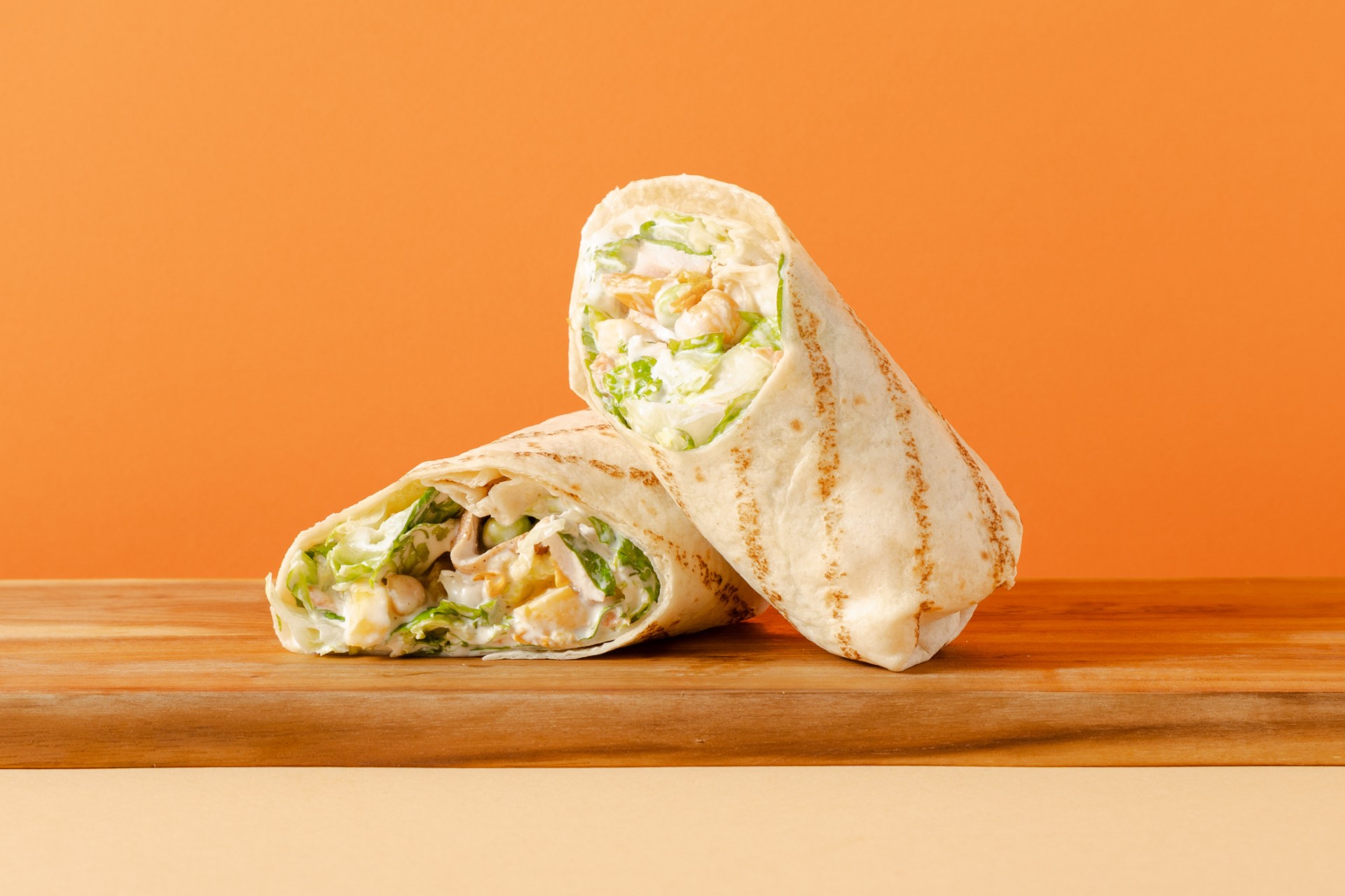 Tortilla(NISUJAHU,vesi, rapsiõli, niiskusesäilitaja (E422), NISUGLUTEEN, kergitusaine (E450, E500), happesuse regulaator (E296), säilitusaine (E202, E282), emulgaator (E471), stabilisaator (E466, E412), KAERAKIUD, NISUKIUD), rooma salat,porgand,virsik,minipipar (suhkur, äädikas, sool, antioksudant(askorbiinhape), tardaine(kaltsiumkloriid)), broilerifilee, vürtsid, rapsiõli, BBQ Golden Carolina kaste(suhkur, tomatipüree, SINEPIPULBER, piirituseäädikas, õunamahl, küüslaugupüree, sool, modifitseeritud tärklis, sidrunimahl, Worcesteri kaste (vesi, linnaseäädikas (ODER), suhkur, roosuhkru melass, sool, tume sojakaste (vesi, sool, melass, suhkur, ODRALINNASE ekstrakt, happesuse regulaator (äädikhape), SOJA ekstrakt (sool, rikastatud NISUJAHU, vesi, SOJAOAD)), sibulapulber, sidrunimahla kontsentraat, valge pipar, tšilli, ingver, küüslaugupulber, nelk), happesuse regulaator (sidrunhape), kurkum, Cayenne'i pipar, sool.